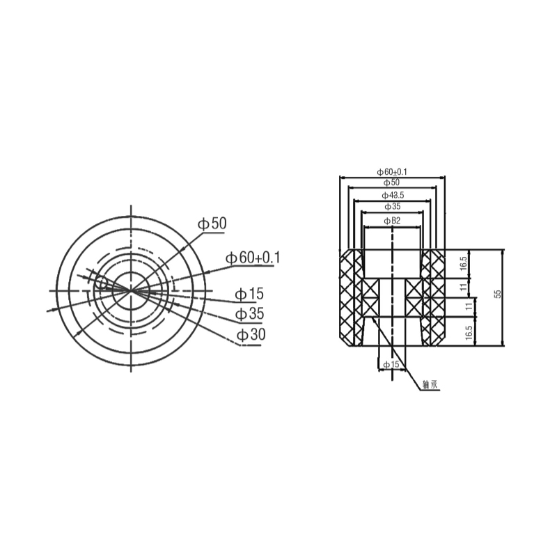 Прижимной ролик имеет диаметр 60 мм и высоту 55 мм. Он оснащен подшипниками 6202. Эта модель подшипника имеет высокую несущую способность и скорость вращения и подходит для сценариев применения роликов эскалатора. Использование ЦП (высокоэффективного пластикового материала) позволяет сохранять стабильные физические и химические свойства в течение длительного времени и продлевать срок службы роликов; в роликах используются высококачественные подшипники и материалы, которые обладают высокой несущей способностью и могут удовлетворить потребности различных нагрузок эскалатора. эксплуатационные требования в данных условиях.