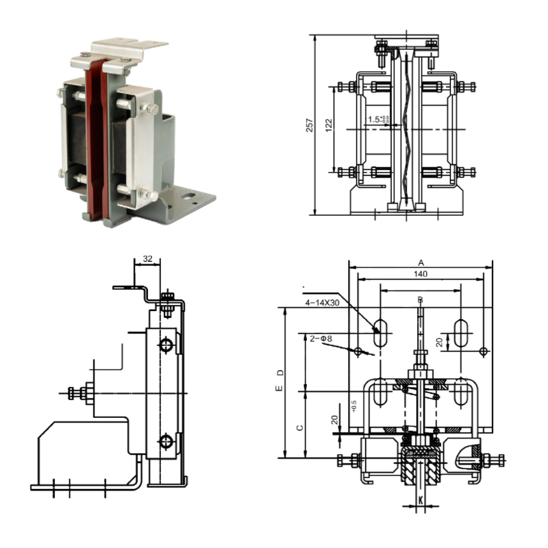 Направляющий башмак высокоскоростного лифта (4 отверстия) предназначен для современных высокоскоростных лифтов с номинальной скоростью до 2,5 м/с, отвечающих потребностям современных зданий в эффективной вертикальной транспортировке; номинальная грузоподъемность не превышает 1500 кг, положительное давление достигает 1450 Н, а диапазон бокового давления составляет 800. Регулируется в диапазоне -1600 Н. Такая гибкость конструкции позволяет направляющим башмакам лучше адаптироваться к различным условиям эксплуатации и изменениям нагрузки, гарантируя, что лифт может поддерживать оптимальные рабочие условия при любых обстоятельствах, и широко сочетается с направляющими № 10 и № 16.